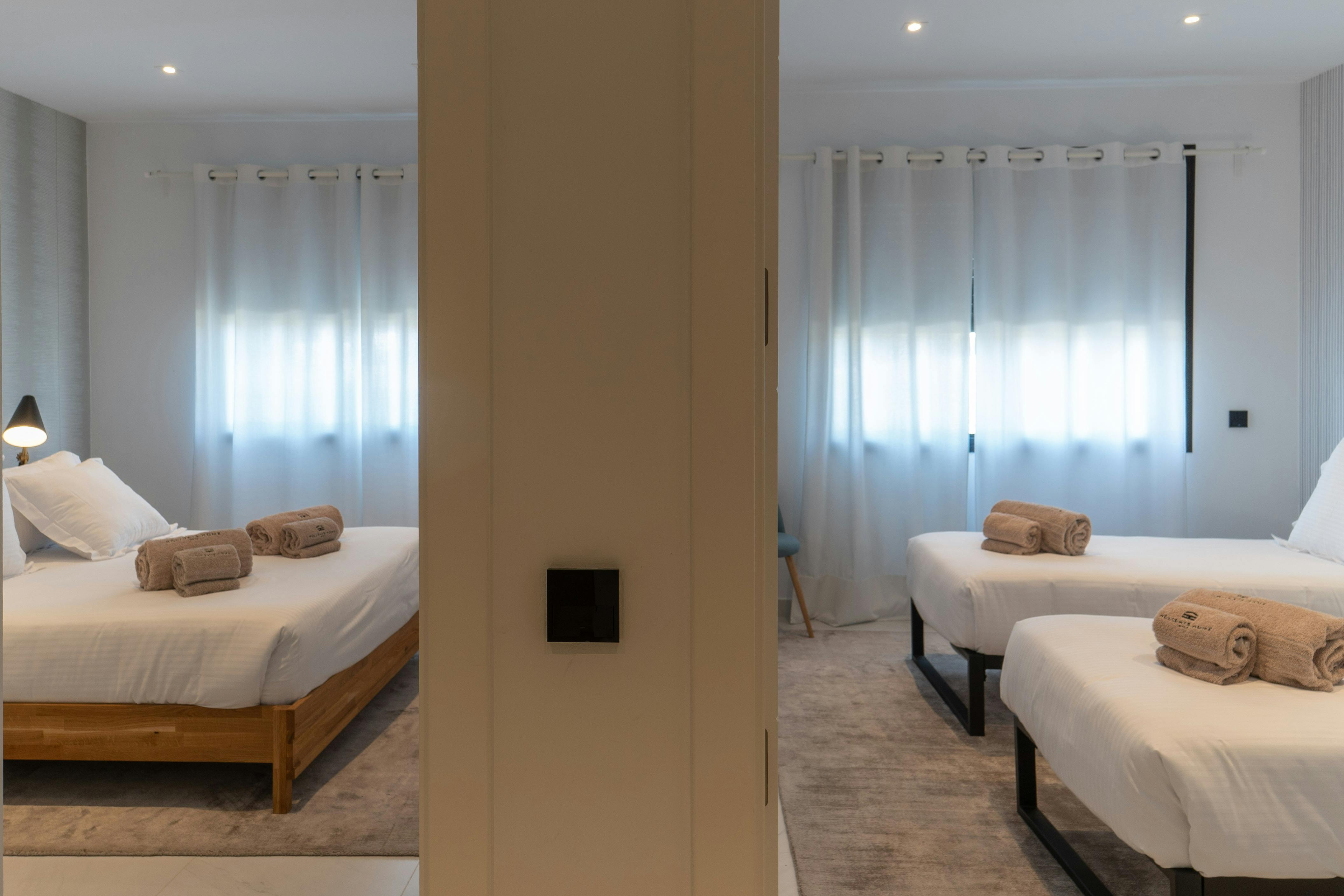 Apartment for 2 people Our apartments for 2 people, of more than 90 m2, have a large bedroom with bathroom, equipped kitchen, living-dining room and terrace. All apartments have a hairdryer, washing machine and iron. Everything you need to enjoy your stay.2 - bedrooms apartment Our spacious 2-bedroom apartments are between 95 and 125 m2, have two bedrooms, one with double bed and other with 2 single beds; 2 full bathrooms, one of them in-suite; equipped kitchen, living-dining room and terrace; everything you need to enjoy your stay. All apartments have a hairdryer, washing machine and iron. Each apartment has its own personality with different decoration.3-bedrooms apartment with sea views Our 3-bedroom apartment, of more than 150m2, has 3 bedrooms, two bathrooms, a toilet, equipped kitchen, large living-dining room and terrace to enjoy with family and/or friends. All apartments have a hairdryer, washing machine and iron. Everything you need to enjoy your stay. Each apartment has its own personality with different decoration.Superior 2-Bedrooms Apartment with Garden Our Superior 2-bedroom apartments are located on the ground floor and feature a spacious garden. These apartments are between 95 and 125m2; with two bedrooms, one with double bed and other one with two single beds; 2 bathrooms (one of them in-suite); an equipped kitchen; a living-dining room and a large terrace; everything you need to enjoy your stay. All apartments have a hairdryer, washing machine and iron. Each apartment has its own character with different decoration.3 Bedroom Apartment with Garden Our 3-bedroom apartment with a garden has 3 spacious bedrooms, 2 full bathrooms, a guest toilet, a fully equipped kitchen, a large living and dining area, and a spacious terrace. It also provides access to a private garden. All apartments include a hairdryer, washing machine, and iron, everything you need to enjoy your stay.Semi-penthouse with sea views and 2 bedrooms Our semi-penthouses are 2-bedroom apartments with sea and city views. They are located on the top floor and have more than 100m2. They have two bedrooms, one with a double bed and other with two single beds; 2 full bathrooms (one of them in-suite), equipped kitchen, living-dining room and large terrace. All apartments have a hairdryer, washing machine and iron. Everything you need to enjoy your stay. Each apartment has its own personality with different decoration.2 bedroom duplex penthouse with views Our wonderful 2-bedroom duplex apartment are have two bedrooms, one with double bed and other with 2 single beds in two floors; 2 full bathrooms, equipped kitchen, living-dining room and two big terraces, one per floor where you can enjoy with your family and friends; everything you need to enjoy your stay. All apartments have a hairdryer, washing machine and iron. Each apartment has its own personality with different decoration.2 bedroom penthouse with sea views Our two-bedroom penthouse with sea and city views is on the top floor It has two bedrooms, one with a double bed and the other with two single beds; two full bathrooms (one en-suite), a fully equipped kitchen, a living-dining room, and a large terrace with wonderful sea and city views. All apartments have a hairdryer, washing machine and iron. Each apartment has its own personality with different decoration.Apartamento de 2 dormitorios con jardín en Colina de Mirador Precioso apartamento situado en Pasaje Colina de Mirador. Goza de dos dormitorios, uno con cama doble y otro con dos camas individuales; 2 baños completos (uno de ellos in-suite), cocina completamente equipada, salón-comedor y amplia terraza con jardín donde poder disfrutar con familia y amigos. Todos los apartamentos cuentan con secador de pelo, lavadora y plancha. Todo lo necesario para poder disfrutar de su estancia.Al reservar este apartamento, está reservando el apartamento que se muestran en las fotografías.3 bedroom apartment with sea views in Vista Hermosa Collection Exclusive 3-bedroom apartment in the prestigious Vista Hermosa Collection. It has 3 bedrooms: two with double beds and one with two single beds; two full bathrooms (one in-suite) and an additional toilet; a fully equipped kitchen; a living-dining room; and a spacious terrace with an office, perfect for enjoying time with family and friends. All apartments include a hairdryer, washing machine, and iron—everything you need for a comfortable stay. By booking this apartment, you are booking the apartment shown in the photographs.