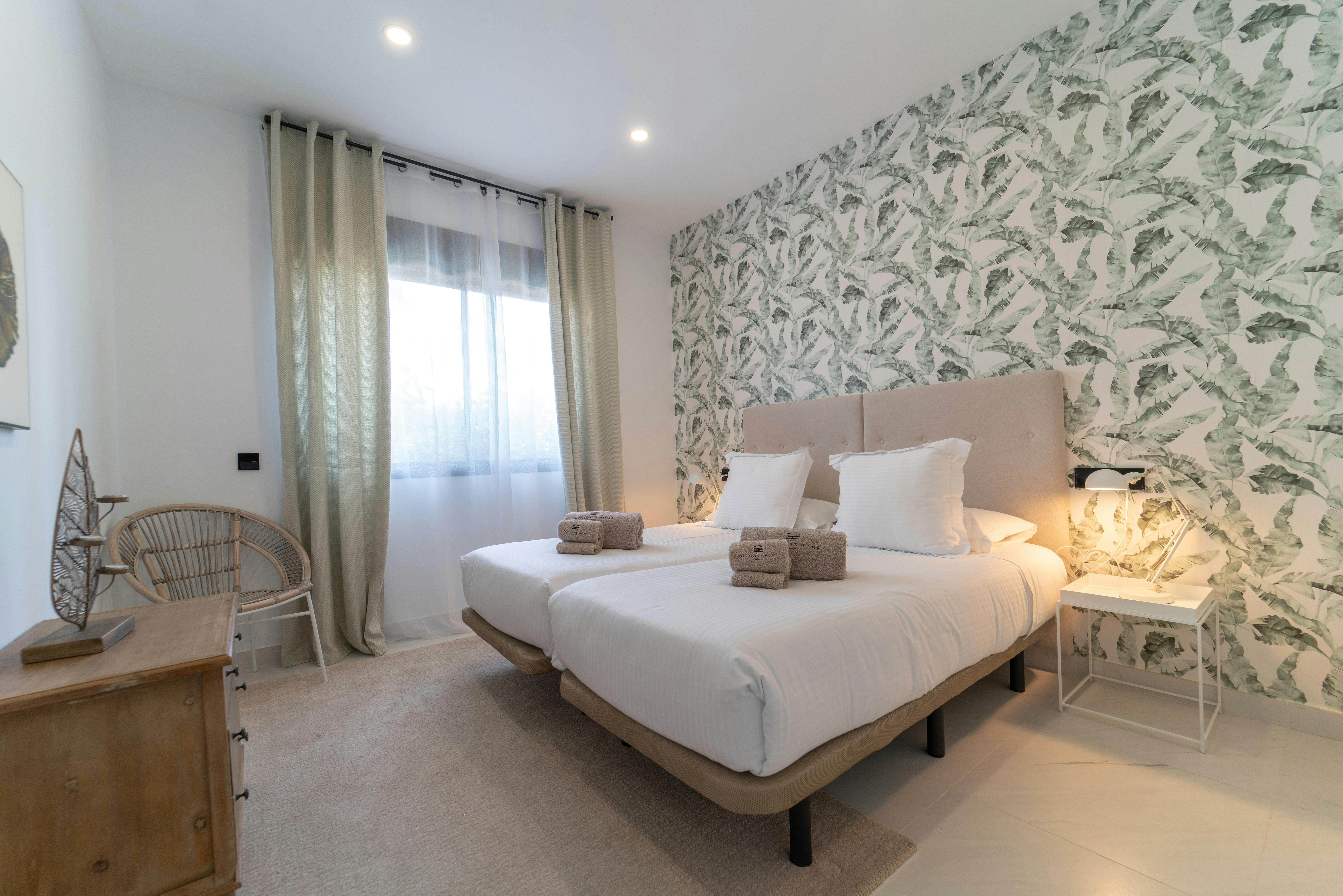 Apartment for 2 people Our apartments for 2 people, of more than 90 m2, have a large bedroom with bathroom, equipped kitchen, living-dining room and terrace. All apartments have a hairdryer, washing machine and iron. Everything you need to enjoy your stay.2 - bedrooms apartment Our spacious 2-bedroom apartments are between 95 and 125 m2, have two bedrooms, one with double bed and other with 2 single beds; 2 full bathrooms, one of them in-suite; equipped kitchen, living-dining room and terrace; everything you need to enjoy your stay. All apartments have a hairdryer, washing machine and iron. Each apartment has its own personality with different decoration.3-bedrooms apartment with sea views Our 3-bedroom apartment, of more than 150m2, has 3 bedrooms, two bathrooms, a toilet, equipped kitchen, large living-dining room and terrace to enjoy with family and/or friends. All apartments have a hairdryer, washing machine and iron. Everything you need to enjoy your stay. Each apartment has its own personality with different decoration.Superior 2-Bedrooms Apartment with Garden Our Superior 2-bedroom apartments are located on the ground floor and feature a spacious garden. These apartments are between 95 and 125m2; with two bedrooms, one with double bed and other one with two single beds; 2 bathrooms (one of them in-suite); an equipped kitchen; a living-dining room and a large terrace; everything you need to enjoy your stay. All apartments have a hairdryer, washing machine and iron. Each apartment has its own character with different decoration.3 Bedroom Apartment with Garden Our 3-bedroom apartment with a garden has 3 spacious bedrooms, 2 full bathrooms, a guest toilet, a fully equipped kitchen, a large living and dining area, and a spacious terrace. It also provides access to a private garden. All apartments include a hairdryer, washing machine, and iron, everything you need to enjoy your stay.Semi-penthouse with sea views and 2 bedrooms Our semi-penthouses are 2-bedroom apartments with sea and city views. They are located on the top floor and have more than 100m2. They have two bedrooms, one with a double bed and other with two single beds; 2 full bathrooms (one of them in-suite), equipped kitchen, living-dining room and large terrace. All apartments have a hairdryer, washing machine and iron. Everything you need to enjoy your stay. Each apartment has its own personality with different decoration.2 bedroom duplex penthouse with views Our wonderful 2-bedroom duplex apartment are have two bedrooms, one with double bed and other with 2 single beds in two floors; 2 full bathrooms, equipped kitchen, living-dining room and two big terraces, one per floor where you can enjoy with your family and friends; everything you need to enjoy your stay. All apartments have a hairdryer, washing machine and iron. Each apartment has its own personality with different decoration.2 bedroom penthouse with sea views Our two-bedroom penthouse with sea and city views is on the top floor It has two bedrooms, one with a double bed and the other with two single beds; two full bathrooms (one en-suite), a fully equipped kitchen, a living-dining room, and a large terrace with wonderful sea and city views. All apartments have a hairdryer, washing machine and iron. Each apartment has its own personality with different decoration.Apartamento de 2 dormitorios con jardín en Colina de Mirador Precioso apartamento situado en Pasaje Colina de Mirador. Goza de dos dormitorios, uno con cama doble y otro con dos camas individuales; 2 baños completos (uno de ellos in-suite), cocina completamente equipada, salón-comedor y amplia terraza con jardín donde poder disfrutar con familia y amigos. Todos los apartamentos cuentan con secador de pelo, lavadora y plancha. Todo lo necesario para poder disfrutar de su estancia.Al reservar este apartamento, está reservando el apartamento que se muestran en las fotografías.3 bedroom apartment with sea views in Vista Hermosa Collection Exclusive 3-bedroom apartment in the prestigious Vista Hermosa Collection. It has 3 bedrooms: two with double beds and one with two single beds; two full bathrooms (one in-suite) and an additional toilet; a fully equipped kitchen; a living-dining room; and a spacious terrace with an office, perfect for enjoying time with family and friends. All apartments include a hairdryer, washing machine, and iron—everything you need for a comfortable stay. By booking this apartment, you are booking the apartment shown in the photographs.